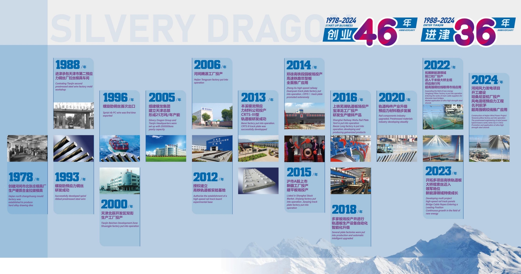2013年,本溪银龙预应力材料有限公司成立,自2013年起连续三年向辽西北水利工程供应PCCP管用钢丝30余万吨。6月26日,中国铁路总公司组织的《CRTSIII型先张法预应力混凝土轨道板技术研讨会》在银龙轨道公司举行,会议充分肯定先期的试验成果。