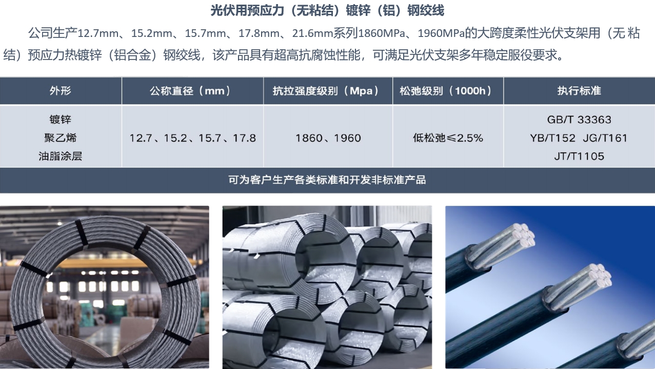 光伏用预应力镀锌(铝)钢绞线