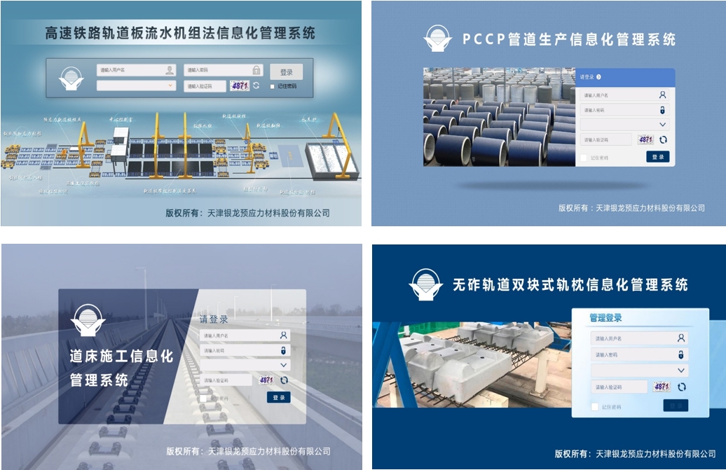 银龙向产业升级积极进取,响应中国智造发展规划,相继研发并推广建筑工程三维位移智能监测系统、无缝线路钢轨爬行监测系统、铁路无缝线路应力放散及锁定施工管理系统、轨道交通混凝土制品生产管理系统、PCCP输水管道生产管理系统、风电混塔智能监测等系列技术和产品。